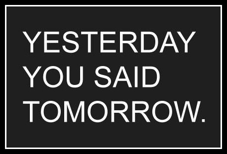 1. Funny, I just responded to a comment that @johnfalchetto:twitter made in a similar vein! Someday (or tomorrow) never comes makes me think of a song from the 50’s maybe that my mom used to sing!